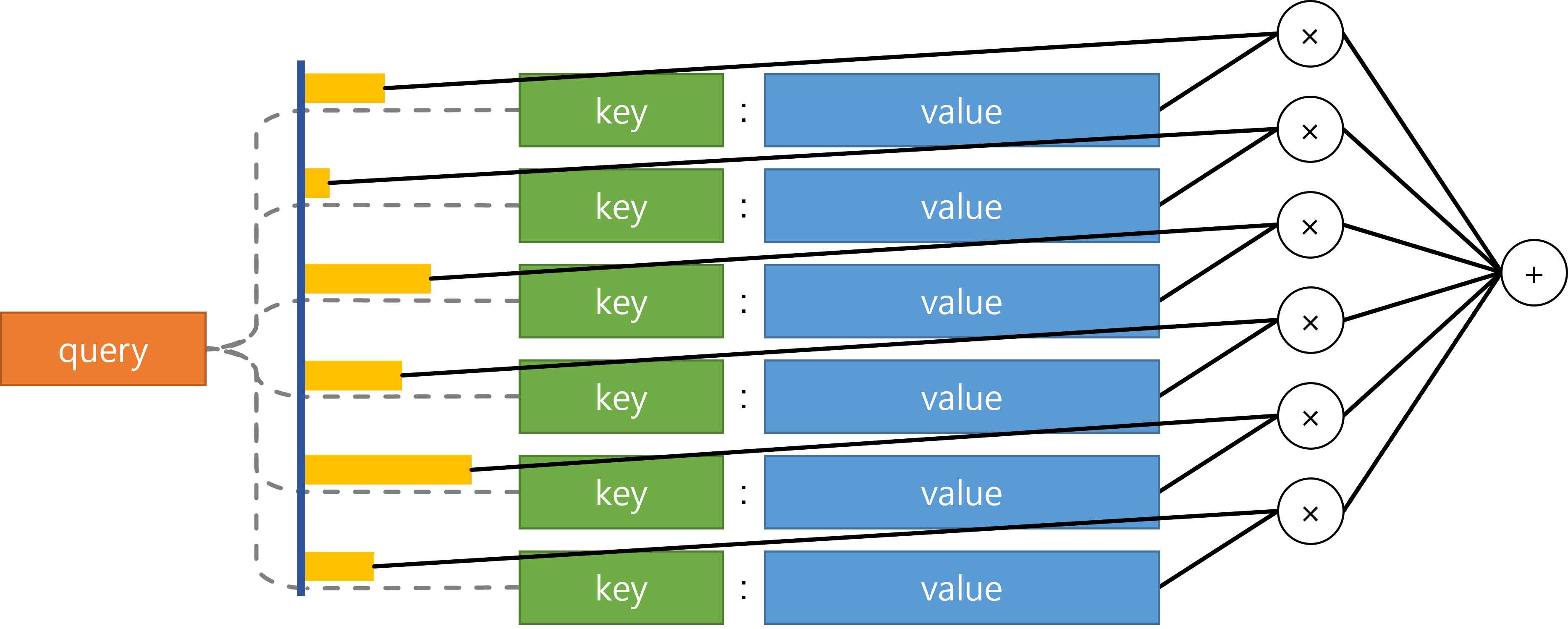 Attention is consist of Query, Key, Value. By making \(A(Q,K,V)\) function to calculate Attention simply. In seq2seq model, Key is same as Value.
